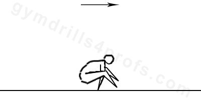The gymnast bends their arms and legs in a straddled piked position. Put the bent legs onto the triceps. Then they should balance on their hands. As the athlete becomes familiar with this position, they should begin to tighten their arms and legs. The end of the progression is in a straddled L-sit.